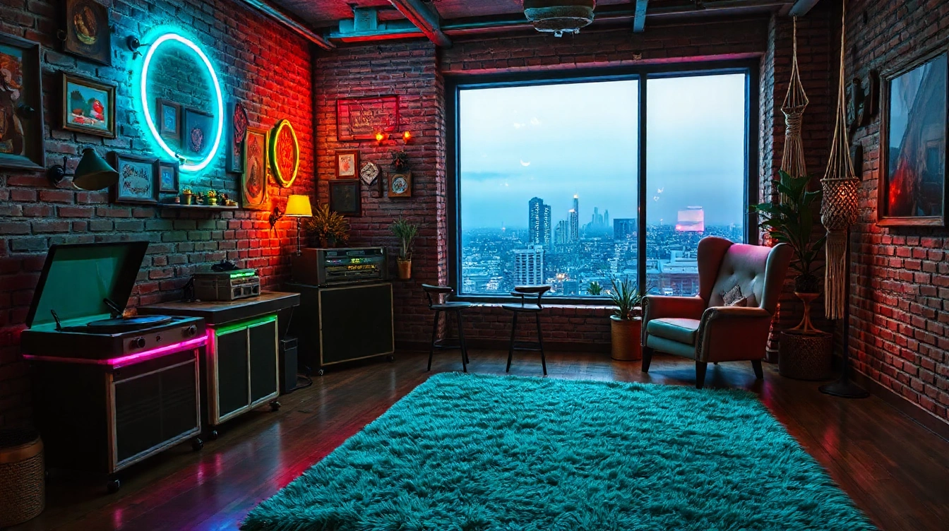 On peut par exemple marier le néon à des matières naturelles telles que le bois brut ou la pierre, qui apportent une chaleur et un contraste très agréables face à la lumière froide et électrique du néon. Cette association favorise une ambiance moderne tout en restant accueillante et équilibrée. De même, le néon se prête parfaitement aux univers industriels : métal, béton ciré, ou mobilier vintage s’associent très bien pour créer une atmosphère urbaine, tendance et dynamique.